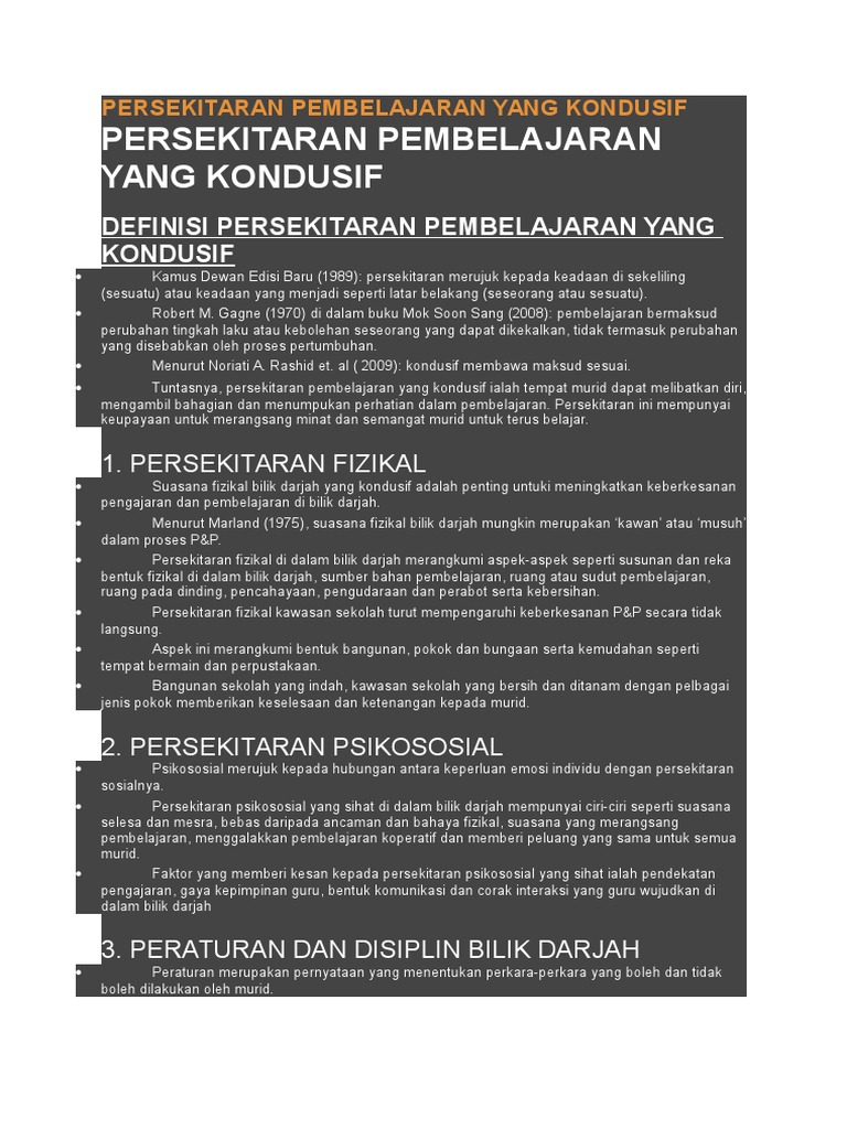 Persekitaran Pembelajaran Yang Kondusif Pdf